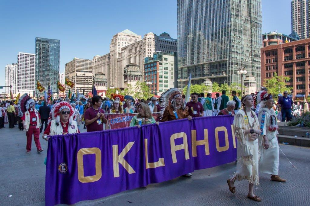 Oklahoma is also a favored sight (possible pun intended) during the parade at the Annual Lions International Convention for the Native American/Indian attire. Every chapter in over 200 countries from around the world march in the parade. Lions International is the only service organization allowed in China. Youth and Adult Speech Contests are popular at the District and State Conventions, with the theme being selected by the International President, but still relating to Service and Lions.